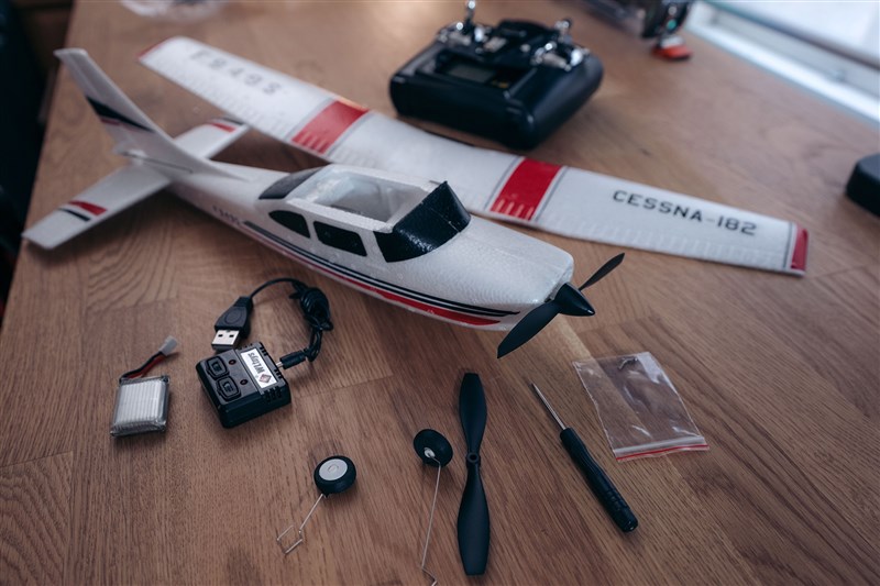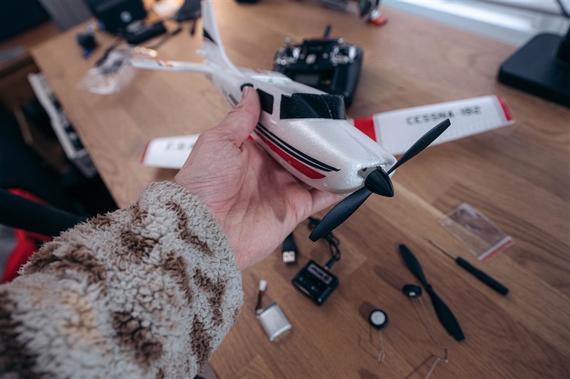 Cessna 182 F949S fra WLtoys er et lille og prisvenligt fly, der gør introduktionen til fjernstyret flyvning både sikker og sjov. Efter at have pakket kassen ud, fik vi et godt førstehåndsindtryk af enkelhed, lav vægt og en fuldstændig begyndervenlig konstruktion. Flyet leveres fuldt samlet bortset fra én skrue og landingsstel, der skal skubbes på, og alt er lagt ud, så du kan bruge det med det samme uden megen forberedelse.