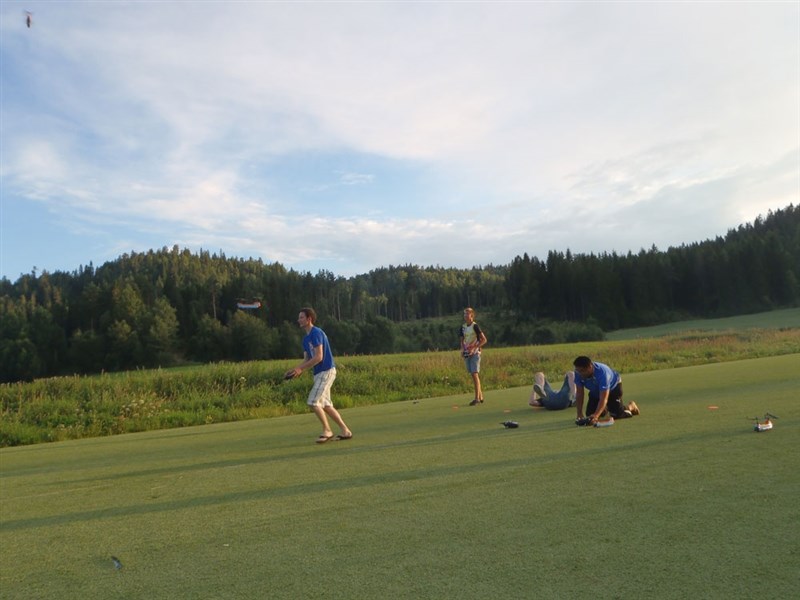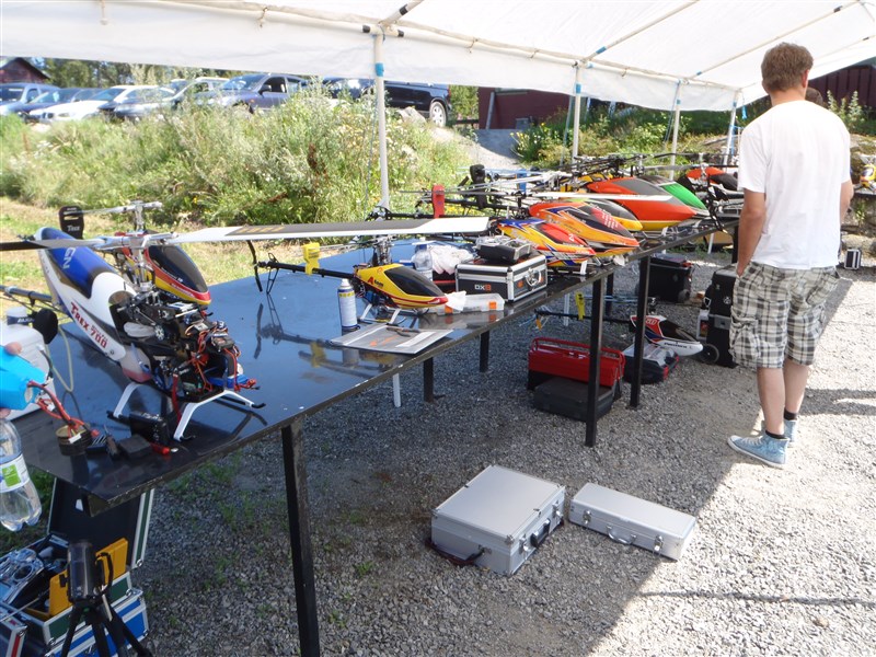 Allerede fredag mødte en god gruppe heli-piloter op for at flyve. Desværre var vi nok blevet informeret lidt for dårligt om, at vi ikke havde nogen rettigheder på striben i fredags. Kun lørdag og søndag. Dette førte til, at nogle af medlemmerne af Larvik Model Airplane Club følte, at deres strip var ved at blive invaderet, og at de blev skubbet til side fra deres egen strip. Vi beklager oprigtigt for dette.