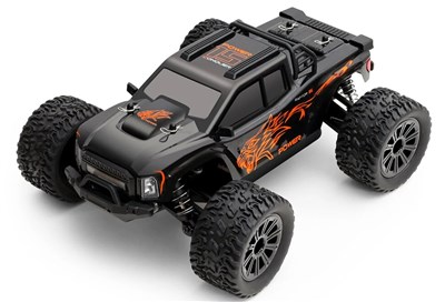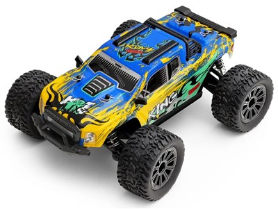 WLToys Hard Monster i 1/14 skala med 4WD. Fedt monster med meget brug af solide aluminiumsdele. Leveres komplet med genopladeligt LiPo-batteri og 2,4 GHz ratradio. Bilen er 31 cm lang og har en tophastighed på op til 45 km/t. Der medfølger en oplade