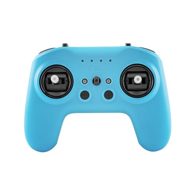 Radioen er blå og kommer med AG01 kardan og ELRS integreret radiomodul. Radiomodulet er kun kompatibelt med ELRS. Radioen bruger 2x Li-Ion 18650 eller 2S LiPo batteri, batteri købes separat.