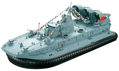 Unik militær svævebåd, der sejler til lands og til vands! Dette fartøj har flere børsteløse motorer, der giver dig kontrol og luft til puden. Det eneste du skal bruge for at få denne 50 cm lange model på sit næste eventyr er 4 AA-batterier til radio
