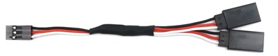 Y-kabel med Futabatype stik. Passer til de fleste radiosystemer, men vær opmærksom på styresporet i stikkontakten, som ikke alle radiosystemer understøtter. 22AWG kabel.