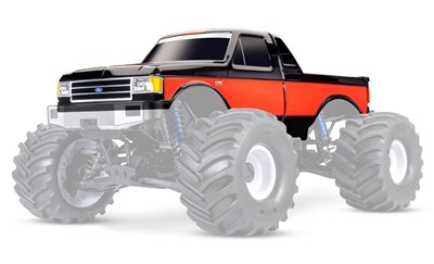 TRX-8911T Maxx 4x4 Body Orange leveres færdigmalet, med traxxas-klistermærker og den indvendige skal, der stivner kroppen.