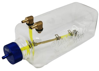 UAT tank til turbiner. Undgå, at luft kommer ind i dine brændstofledninger, hvilket sikrer problemfri drift af turbinen. Passer til møller med størrelse 60-140N. Leveres med en 4 mm nippel og rummer 250 ml. Flasken har en diameter på 62 mm og er 130