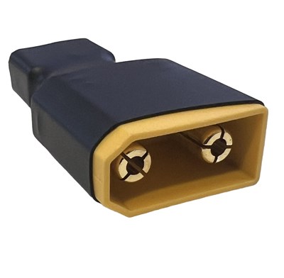 Praktisk og kompakt overgang fra EC5 til XT90. God, hvis du har batterier med XT90-stik, som skal bruges mod en EC5-opsætning.