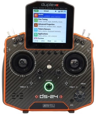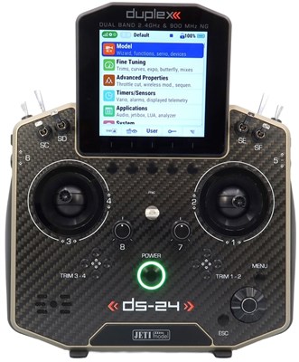 Jeti DS-24 II er en stilren radio i metalkonstruktion, denne sikrer god beskyttelse og et godt kvalitetsindtryk, udover dette er radioen en Carbon Line udgave, der har en flot carbon front. Den er kraftfuld med masser af modifikationsmuligheder, pro