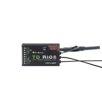 Med FrSkys Tandem-modtagere fungerer 2,4GHz samtidigt med 900MHz-båndet, hvilket giver dig lav latency, god rækkevidde og minimal interferens. Derudover har SR-versioner som denne en indbygget gyro! Modtageren har 10 indgange og en SBUS-udgang. Denn