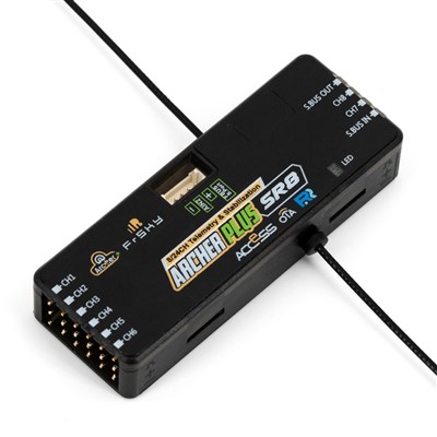 FrSky Archer Plus SR8 er en modtager med ACCES og ACCST D16 protokol, der også har en black-box funktion og nogle grundlæggende flydata. Modtageren har 8 indgange og en SBUS ind- og udgangsport.