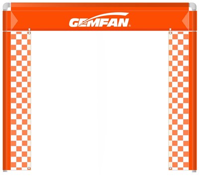 FPV Port, der leveres sammen i en opbevaringspose på 53x10x5cm. Når den er monteret, kan den indstilles med 1,5 m porthøjde (ekstraudstyr) eller 1,2 m. Bemærk, at dette ikke er en pop-up-port, men en, du sætter sammen med 50 cm stænger, der er sat s