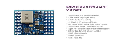 PM02D leverer reguleret strøm til Pixhawk 5X og 6X fra batteriet, samt målinger af strømforbrug og batterispænding, alt sammen via et 6-benet kabel. Den indbyggede switch-regulator leverer 5,2V og maksimalt 3A fra LiPo-batterier op til 12S (HV). Str