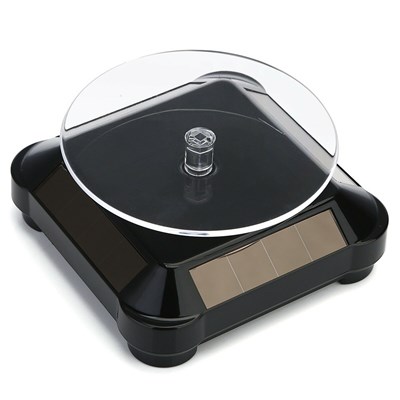 Roterende stativ drevet af solcellepanel. Beregnet til lette genstande såsom 3D-printede genstande.