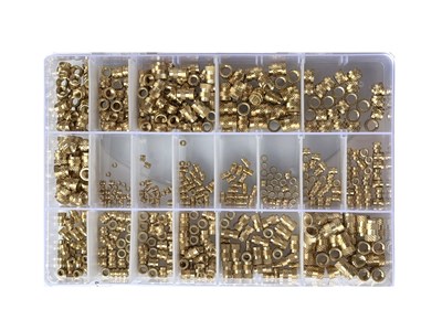 Sæt indeholdende gevindindsatser i størrelserne M2, M3, M4, M5 og M6 i 4 forskellige længder og 25 stk af hver.