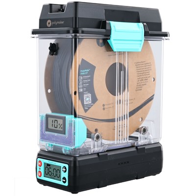 Polymaker PolyDryer er en innovativ løsning til at holde 3D-printerfilament tør og i optimal stand. Ved at fjerne fugt fra filamentet sikrer PolyDryer en bedre printkvalitet og reducerer risikoen for defekter forårsaget af fugt. Den brugervenlige en