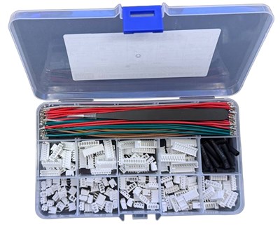 Sæt der indeholder JST-XH2.54 i 2-6 ben i både han- og hunstik. I alt indeholder sættet 460 dele. Se billede for indhold. Disse stik bruges ofte i forbindelse med 3D-printere, CNC-fræsere og som balanceringsstik til lipo-batterier.