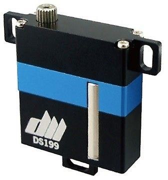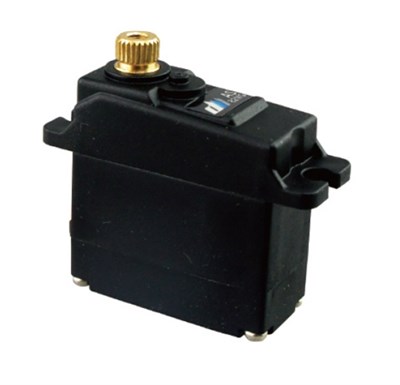 Dualsky 13 mikro digital servo med dobbelt kuglelejer og metaludstyr. Tåler 4.8-6V og leveres med 18 cm JR servokabel, forskellige servohorn og fastgørelsesskruer.