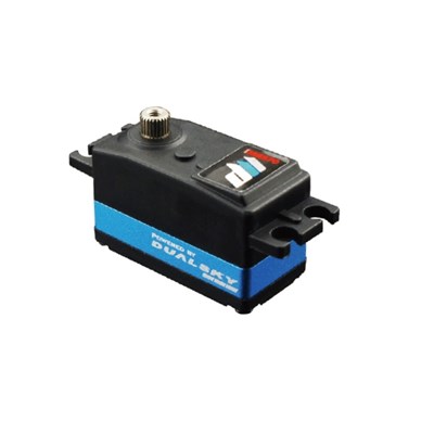 Digital storskala servo på 202 gram fra Dualsky med metaludstyr og dobbelt kuglelejer. Servoen er designet til at blive brugt som styreservo på 1/5 skalaer, men kan også bruges på andre hobbymodeller. Størrelsen er 66x30x56mm, og servoen trækker hel