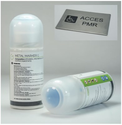 Metal Marker G er et alkoholbaseret produkt til lasermærkning på metal med CO2-laser. Fordelen ved Metal Marker G i forhold til laserspray som Thermark og Cermark er, at Metal Marker G påføres som limstift/silikonestift. Der er ingen spray involvere