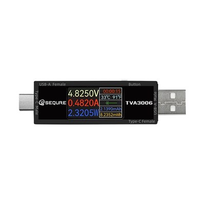 TVA3006 kan teste 4,5 til 30V og 0 til 15A. Understøtter USB-A og USB-C interface.