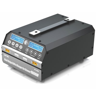 SkyRC PC1080 er en kraftig computeroplader designet til brug på store 6S UAV-batterier. Opladeren er designet til brug ved normal 220V netspænding og har to udgange på i alt 1080 watt. Afladestyrken er 50w per kanal, så her er det også muligt at afl