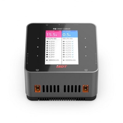 ISDT P30 klarer det meste af det, du kan oplade en oplader. 2 kanaler med op til 1000W ladeeffekt pr. kanal (max 1500W i alt) til 1-8S lipo. Kræver 10-34V input via XT90 stik. XT60 stik ud. Touchskærm for nem betjening og mulighed for at styre oplad