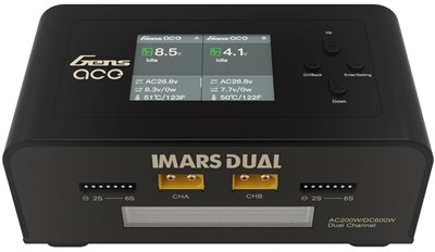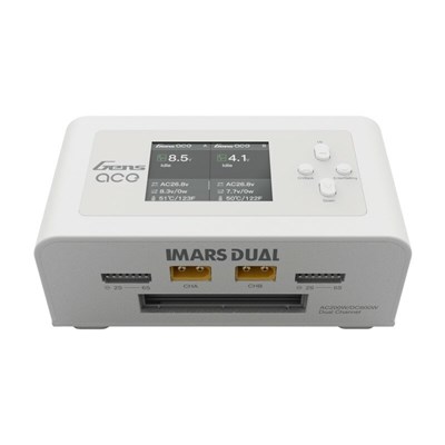 Gens Ace Imars D300 Dual Charger er en kraftig oplader med to udgange. Opladeren kan oplade flere forskellige typer batterier inklusive LiPo og kan bruges både på 220V derhjemme og på 12V eller en lignende strømkilde. Ladeudgangene er XT60 og den ko