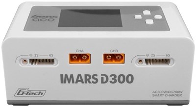 Gens Ace Imars D300 Pluss Charger er en kraftfuld oplader med to udgange. Opladeren kan oplade flere forskellige typer batterier, herunder LiPo, og kan bruges både på 220V derhjemme og på 12V eller lignende strømkilde. Opladningsudgangene er XT60, o