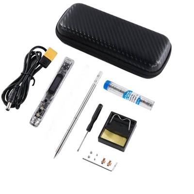 Sequre S60P er en lille, men kraftig loddekolbe. Kræver 12-21V (2-5S) input, og kabel til tilslutning af batteri med XT60 stik er inkluderet. Strømforsyning kan købes separat, hvis ikke understøtter den også PD3.0 FPV-batterier. Loddekolben justeres
