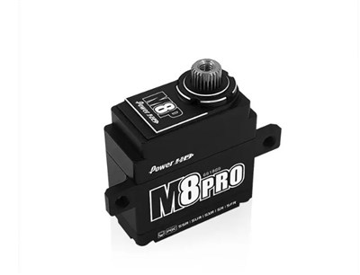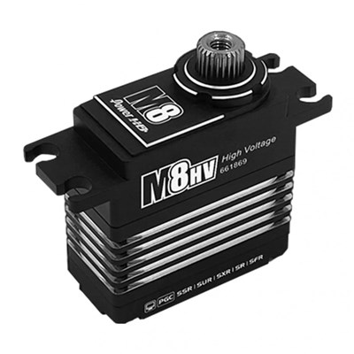 PowerHD M8H med kerneløs motor, 7075 Aluminium. Power HD M8H er en 1:12 Pan car-servo, som er optimeret til 1:12 racing. Understøtter FLYSKY i-BUS2-protokollen og højhastighedstilstandene for blandt andet Noble NB4 Pro, Futuba og Sanwa-tilstande.