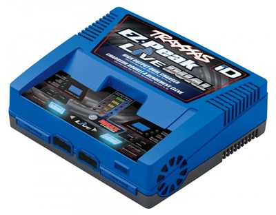 Traxxas EZ-Peak Live Dual 26A er en enkel, men strålende oplader, der kan oplade to batterier på samme tid. Traxxas batterier med iD-stik indstilles automatisk til den rigtige type og opladningsstyrke, kontroller altid indstillingerne og batteritype