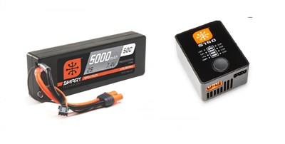 Spektrum Smart G2 Powerstage Bundle 3S indeholder 1 stk 3s 5000mAh 50C G2 IC5, og 1 stk Spektrum S155 1x55W oplader kan oplade op til 4S LiPo.