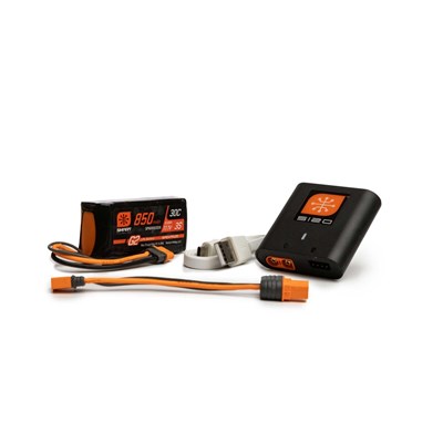 Spektrum Smart G2 Air Powerstage Bundle 3S indeholder 1 stk 3s 2200mAh 30C HC G2 IC2, IC3 til IC2 overgang og 1 stk Spektrum S120 1x20W oplader med USB ladekabel.