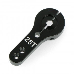 Massivt servohorn til servoer med 25T splines (Futaba). 2 stk skrue og 2 stk M3 monteringshuller med en afstand på 20 mm og 24 mm fra midten.