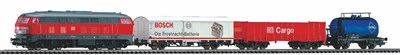 Komplet startsæt med tog, skinner og transformer. Togsættet indeholder et BR 218 godstog og to vogne med graffiti i skala H0 (1:87). De medfølgende skinner giver et stort ovalt spor på 110x88 cm. En perfekt start til at komme i gang med modeljernban