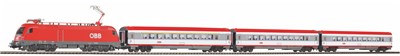 Komplet startsæt med tog, skinner og transformer. Togsættet indeholder et ÖBB-lokomotiv og tre matchende personbiler i skala H0 (1:87). Medfølgende skinner giver et stort ovalt spor på 158x88cm. En perfekt start til at komme i gang med modelbanen.