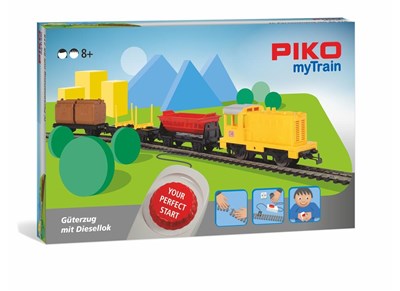 PIKO myTrain er en serie af startsæt til de små. Sættene er H0-skala og fuldt kompatible til udvikling med andre PIKO-produkter i samme skala. Startsættet indeholder alt hvad du har brug for for at komme i gang. En oval bane, styreenhed, lokomotiv o
