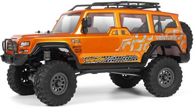 1/24-skala rockcrawler af en Ford Bronco med 4WD og gode cross-country evner. Hele kroppen kan vippes bagud og kræver ingen clips, hvilket giver dig nem adgang til elektronikken. Licenserede Nitto Trail Grappler M/T-dæk giver et robust udseende med