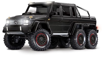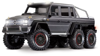 Med TRX-6 Mercedes-Benz G63 AMG 6x6 får du de råeste og mest robuste larvebånd Traxxas kan tilbyde. Modellen er en officielt licenseret skala-replika af den smarte original fra Mercedes, der repræsenterer al mangel på fornuft, og som man ikke bør gå