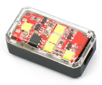 Strobelys fra VIFLY! Denne strobe vejer kun 6g, virker i op til 4 timer og kan ses næsten 5 km væk! Stroben indeholder 3 hvide lys, 1 rødt lys og 1 grønt lys og oplades via det medfølgende USB-C kabel (ikke mikro som vist). Ladespændingen er 4,5-5,5