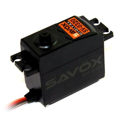 Savöx Digital Standard Servo SV-0320+. Servoen leveres med blød start-tilstand og Sanwa SSR-kompatibilitet.