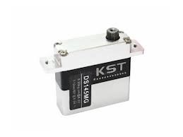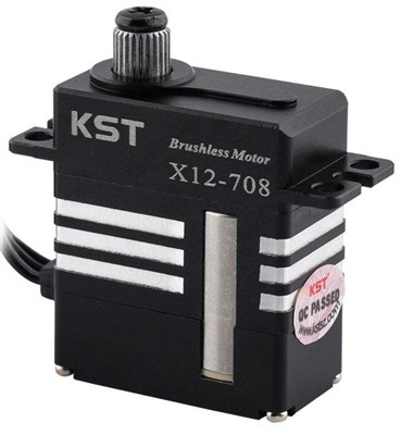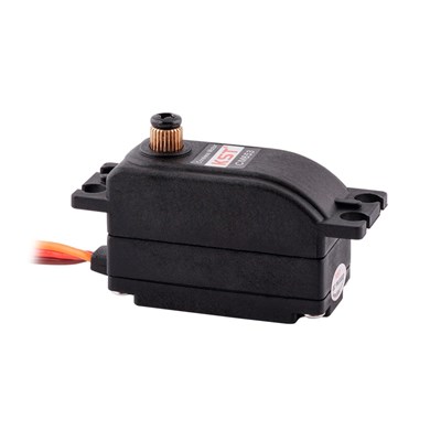 KST her med en latterligt kraftfuld og præcis servo i standardstørrelse med 4-polet børsteløs motor, cnc bearbejdet kabinet, hærdet stål gear og IP65 certificering. Perfekt til store modelfly.