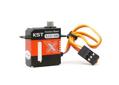 KST X12-508 Digital Servo er ideel til brug i 325-420mm helikoptere såsom Align T-Rex 450 eller T-Rex 470L. I kassen medfølger 2 stk plasthorn med fastgørelsesskruer samt fastgørelsesskruer til servo.
