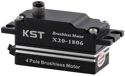 KST X20-1806 Low Profile Digital MG Servo er en meget hurtig, lavprofils og kraftig digital servo med stålgear, 4-polet børsteløs motor, aluminiumshus og 25T spline. Denne servo tager 6-8,4V ind og har evnen til at trække 18 kg ved 8,4V! Servoen vej