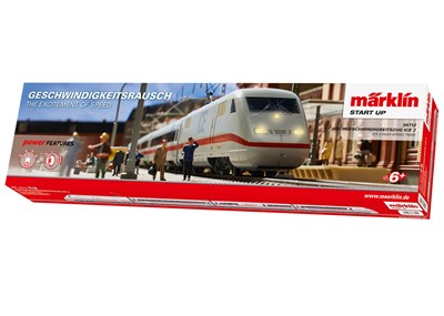 Marklin her med et komplet digitalt lokomotiv med vogne og et fabriksmonteret lys- og lydmodul. Kassen indeholder to ICE-lokomotiver og to matchende ICE-personvogne i skala H0 (1:87).