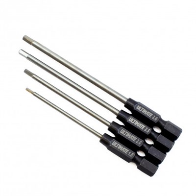 Unbrakonøglesæt, der kan bruges på bor. Sættet indeholder 4 bit med en længde på 80 mm og har hex på 1,5, 2, 2,5 og 3 mm. Leveres i dejlig plastkasse, med holder til de 4 bit.