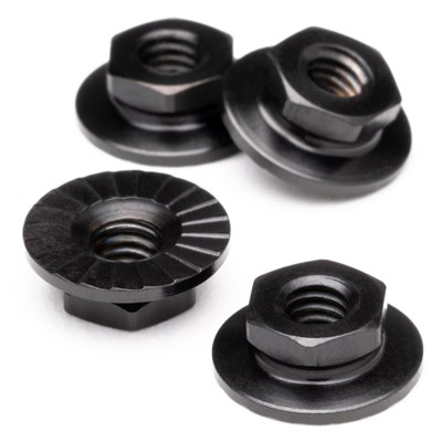 Ultratynde og ultralette hjulmøtrikker i titanium. 4 stk i pakken. Kan vaskes med opløsningsmiddel for et gunmetal look eller med fedt for et satin look som på billedet.