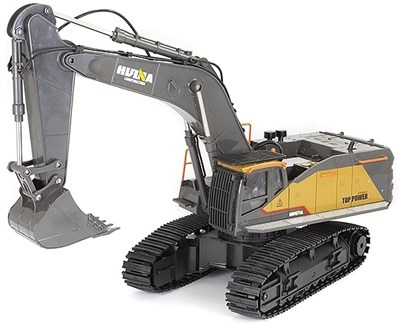 Huina her med en gravemaskine, der kører fremad, bagud, højre, venstre, drejer tårnet hele 680 grader, op og ned med skovlen. Den er også udstyret med lys og lyde udover en fører. Lige så sjov for voksne som børn. Gravemaskinen har blandt andet et m