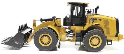 Carrera her med sin egen hårde CAT-licenserede gravemaskine på ca. 49 cm. Gravemaskinen kan køre frem/tilbage og dreje til højre/venstre, armen og skovlen kan bøjes. Denne model kan også køre i op til 40 minutter på en enkelt opladning. Med 2,4 GHz