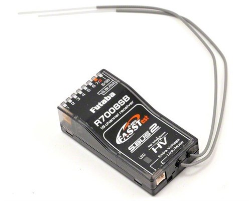 8CH-modtager til FUTA-radioer med FASSTest-teknologi, for eksempel 18 MZ. Modtageren har telemetri, og to kan bruges samtidigt til at stille i alt 16 kanaler til rådighed.