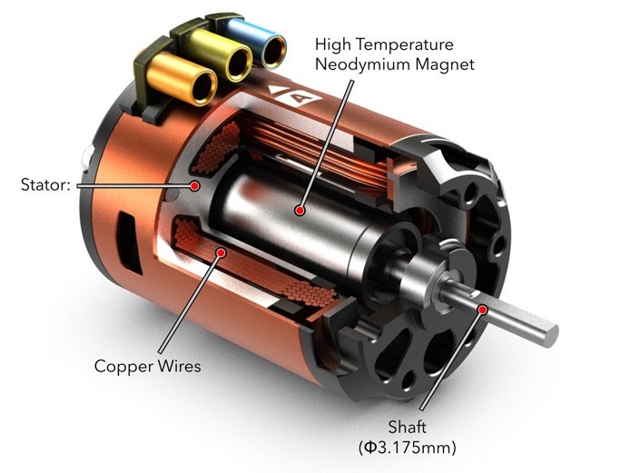 Børsteløst motorsæt, som er sensorbaseret. Sættet er lavet til 1/10 biler og leveres med motor, regulator eller programmeringskort. Sensorbaserede motorer har bedre respons og giver bedre følelse i lave hastigheder og for eksempel ved acceleration efter sving. Motor og regulator leveres med færdigt loddede stik, mens batteristik ikke er loddet på. Regulatoren kan programmeres med medfølgende programmeringskort. Man kan justere reverse, acceleration, bremse og batteritype.