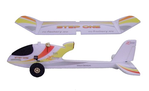 Vi har forsøgt at gøre opbygningen af modellen så enkel som muligt, så selv en uerfaren modelbygger kan bygge modellen korrekt og uden komplikationer. Det er også underlagt meget detaljerede instruktioner. Det er ikke noget svært at styre det nye Step One, hvis du overholder de anbefalede indstillinger. Modellen kan styres selv af motorkraft og ror alene. Modellen er rolig og stabil i luften, men til de første lanceringer bør du hellere vælge roligt vejr.
